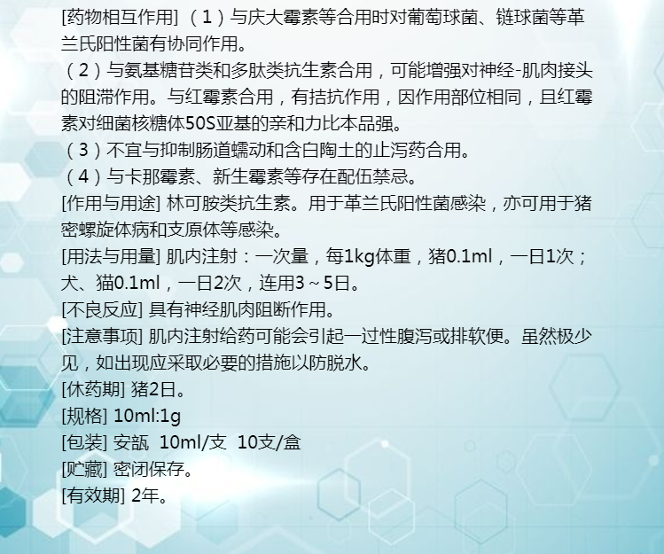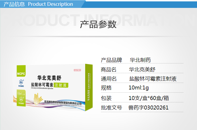 處方藥 【華北制藥】克美舒 鹽酸林可霉素注射液 子宮內膜炎 產后消炎 腹瀉拉稀 支原體 豬密螺旋體病