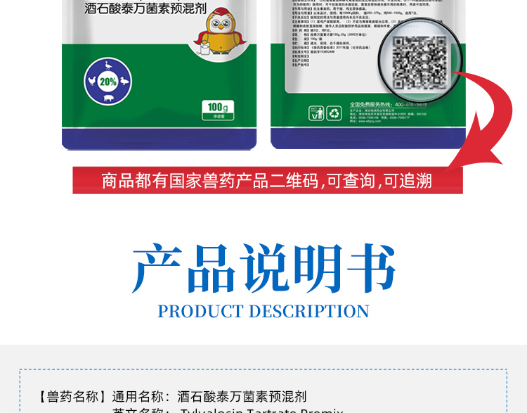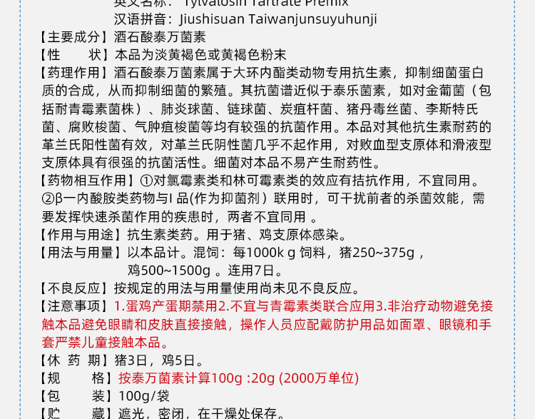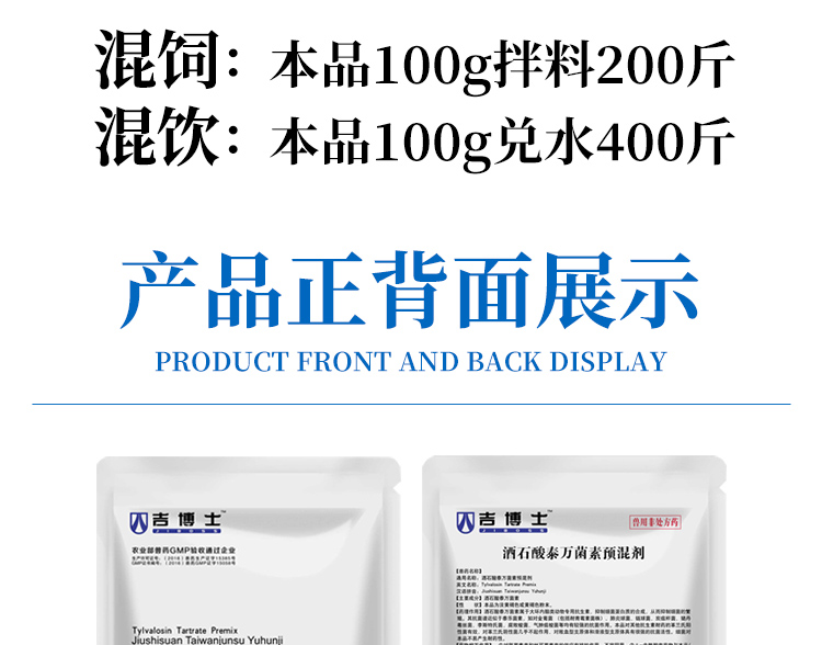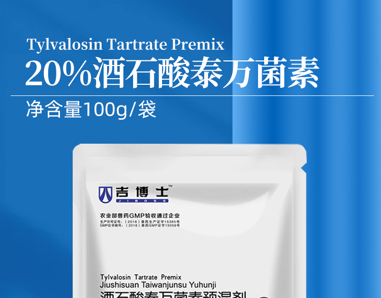 【吉博士】20%酒石酸泰萬菌素預混劑100g 支原體圓環(huán)藍耳病