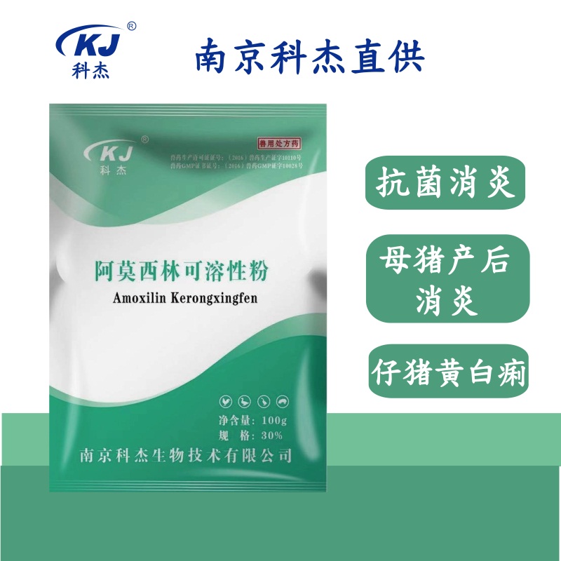 處方藥 【南京科杰】阿莫西林可溶性粉30%(100g×50袋)用于治療畜、禽黃白痢、豬丹毒、母豬產科類疾病,