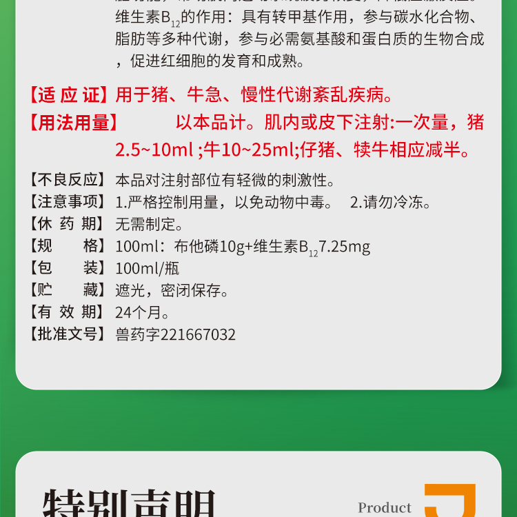 【豬大夫】復方布他磷注射液 抗應激促生長母豬產后恢復病后體能提升 豬牛羊禽通用 源自科特壯同成分