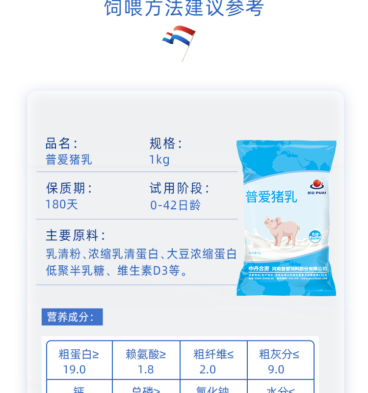 【普愛豬乳】豬奶粉1kg/包 包郵 高營養 提高免疫力 仔豬進口代乳粉教槽料斷奶料開口料小豬奶粉