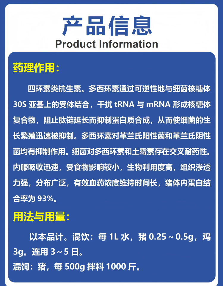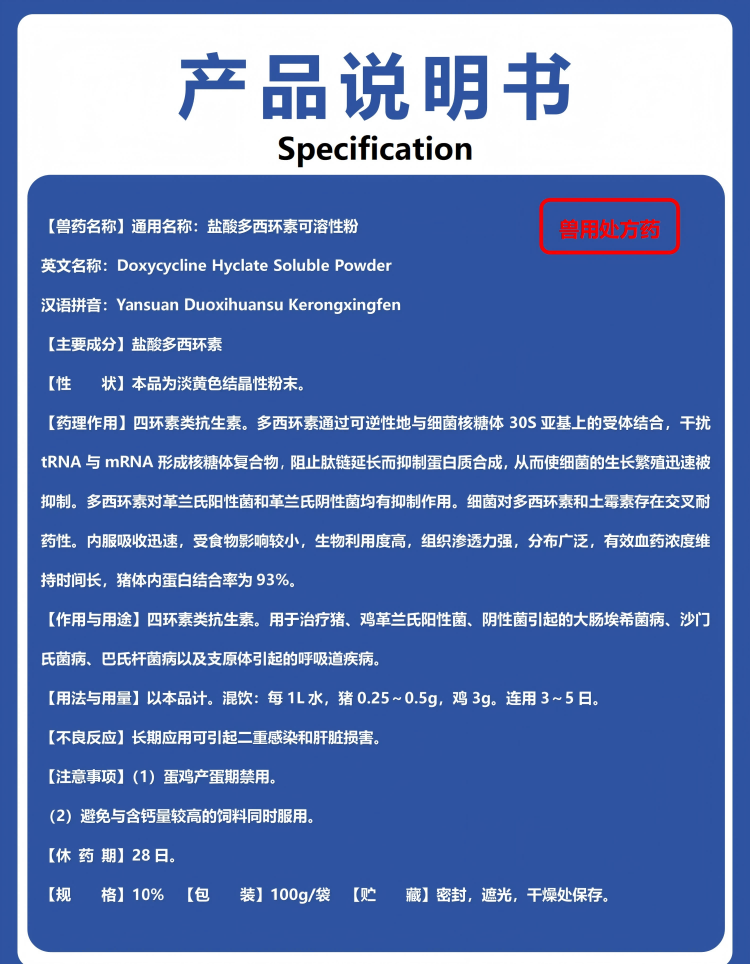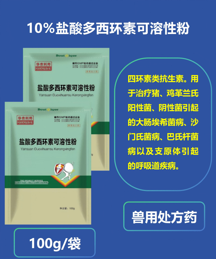 處方藥 【華農(nóng)利邦】10%鹽酸多西環(huán)素可溶性粉,100g/袋,大腸桿菌豬肺疫支原體鏈球菌呼吸道疾病